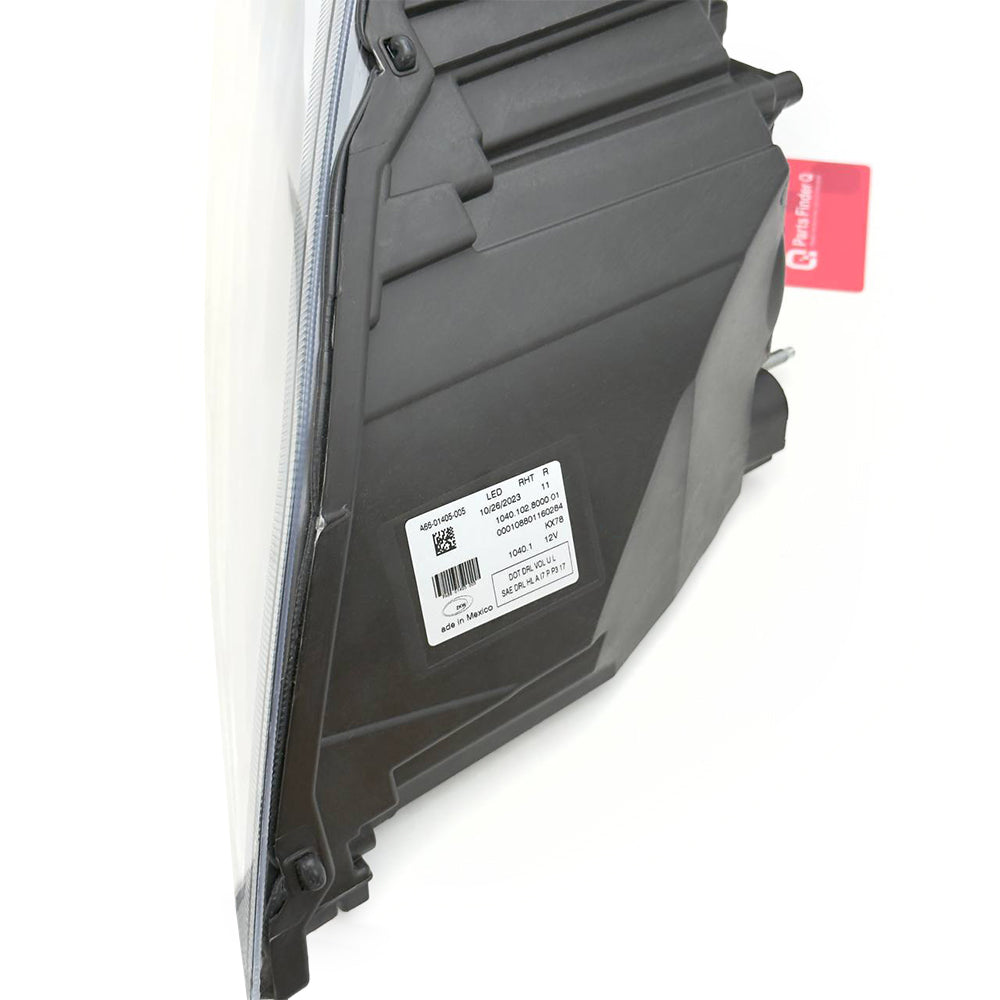 This Genuine Freightliner LED Headlamp Assembly, listed under Part number: A66-01405-005, is a new right-hand unit engineered for heavy-duty trucks. Built with LED technology, it delivers brighter illumination, longer service life, and reduced energy consumption compared to halogen designs. Designed for seamless integration on the right side, it ensures consistent performance and proper fit on Freightliner models. Cross reference: A6601405005