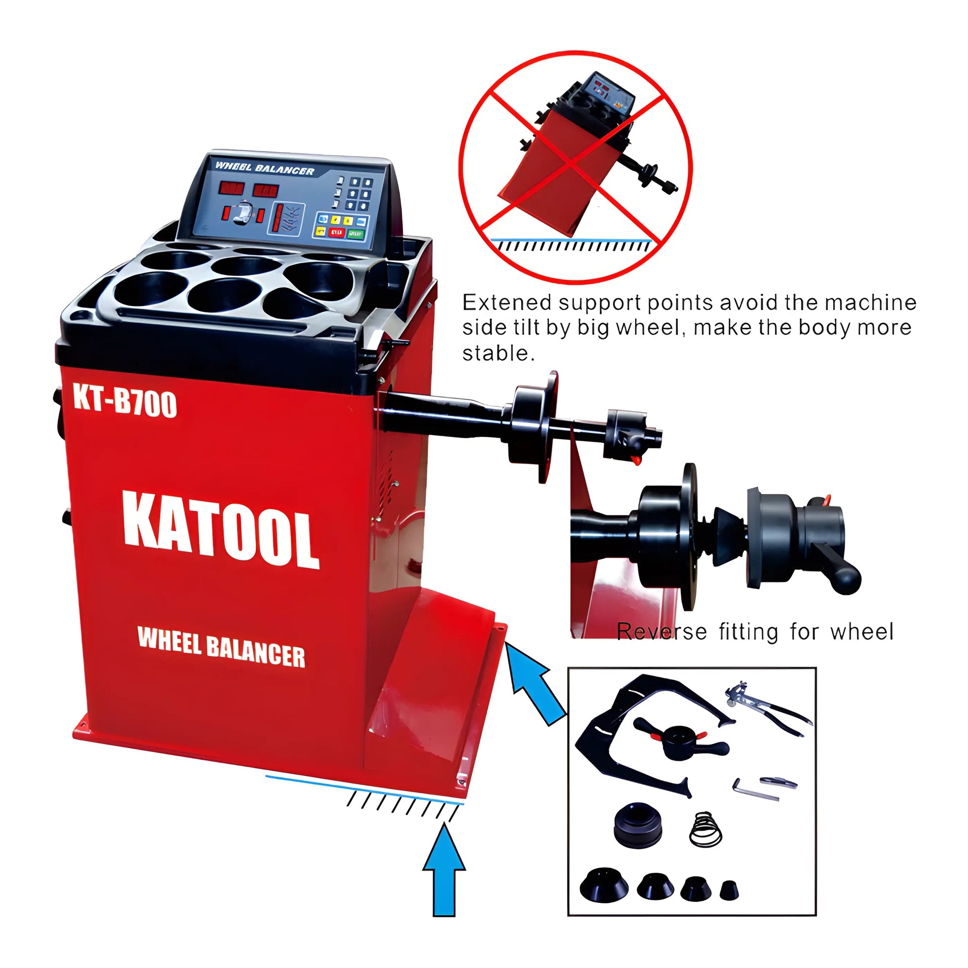 The wheel balancer, KT-B700, is essential for achieving perfect tire balance. It prevents vibrations while driving, which enhances vehicle safety and comfort. This machine offers precise measurements for better accuracy when balancing tires. Therefore, results in a smoother ride and better tire longevity. Furthermore, the easy-to-read display makes it simple for users to obtain balance measurements quickly, ensuring less time in the shop and more time on the road.